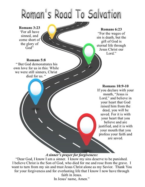 Would you like to follow the Romans Road to salvation? If so, here is a simple prayer you can pray to God. Saying this prayer is a way to declare to God that you are relying on Jesus Christ for your salvation.